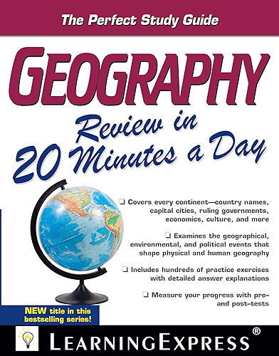 Geography Review in 20 Minutes a Day: LearningExpress LLC ~ Geography Review in 20 Minutes a Day Paperback – February 16, 2012 by LearningExpress LLC Editors (Author) 5.0 out of 5 stars 2 ratings. See all formats and editions Hide other formats and editions. Price New from Used from Kindle "Please retry" $6.99 .